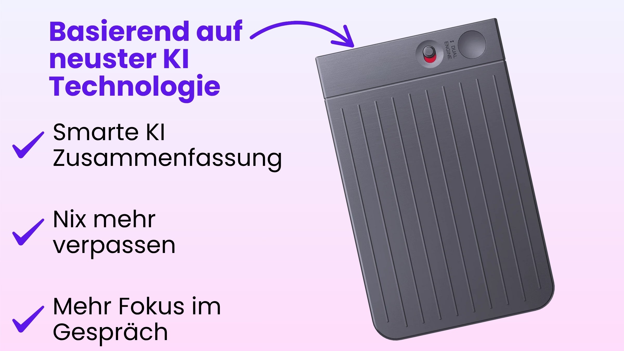 Mit MindMateAI™ musst du nie wieder zwischen Zuhören und Mitschreiben wählen. Ob im Studium oder im Beruf – dein smarter Assistent hält alles für dich fest, fasst das Wichtigste mit modernster KI-Technologie zusammen und gibt dir die Freiheit, dich voll auf das Gespräch zu konzentrieren. So bleibst du produktiv, verpasst keine Details und hast am Ende des Tages mehr Zeit für das, was dir wirklich wichtig ist.